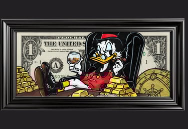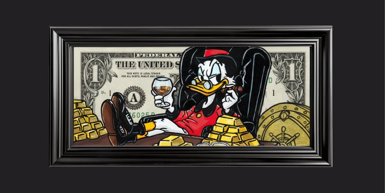 Chaque œuvre est une création originale, peinte à la main sur un véritable billet de dollar américain.