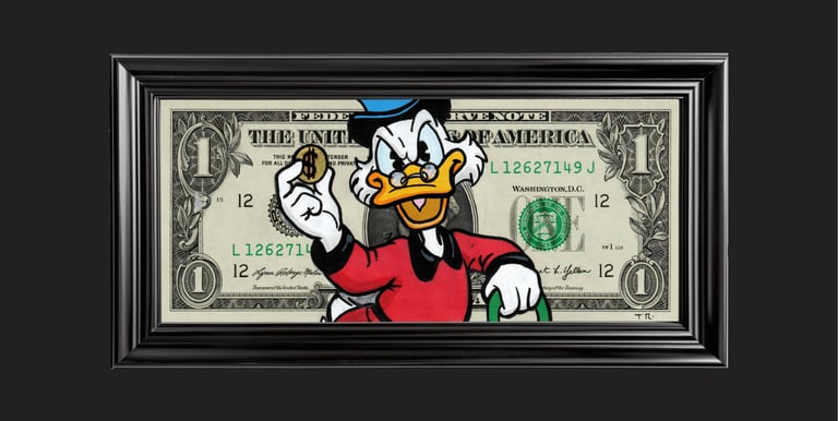 Chaque œuvre est une création originale, peinte à la main sur un véritable billet de dollar américain.
